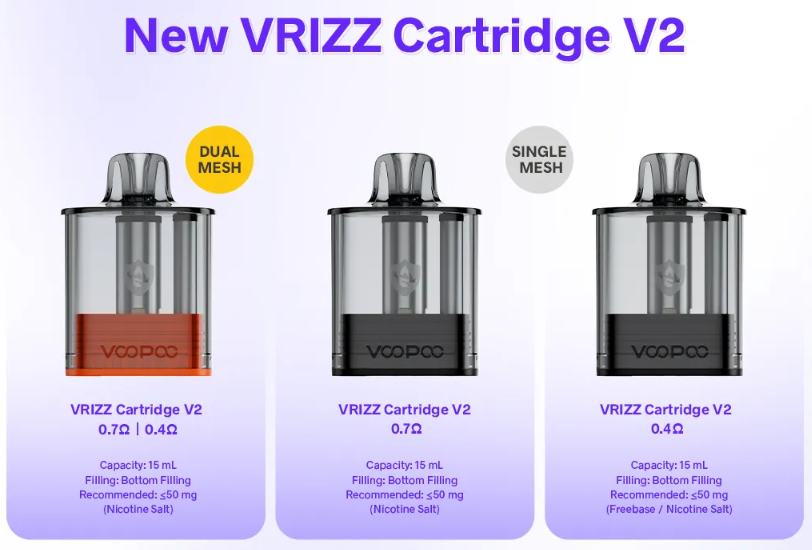 • VRIZZ Cartridge V2 Dual Mesh Tech • iCOSM 2.0: One Cartridge up to 80K Puffs