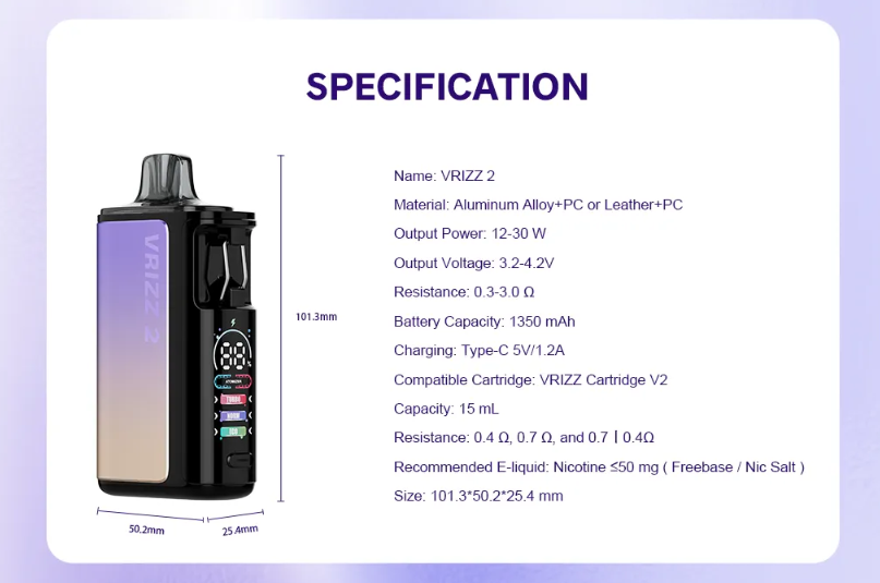 VOOPOO Vrizz 2 Kit Electronic Cigarette 12-30 W Vape with 1350mAh Battery 15ml Empty Pod Cartridge 0.7ohm Vaporizer